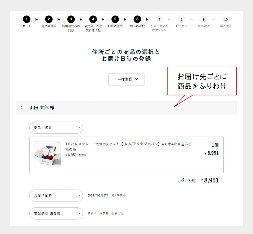 STEP3:ゲストごとに商品を振り分け、お届け日を指定