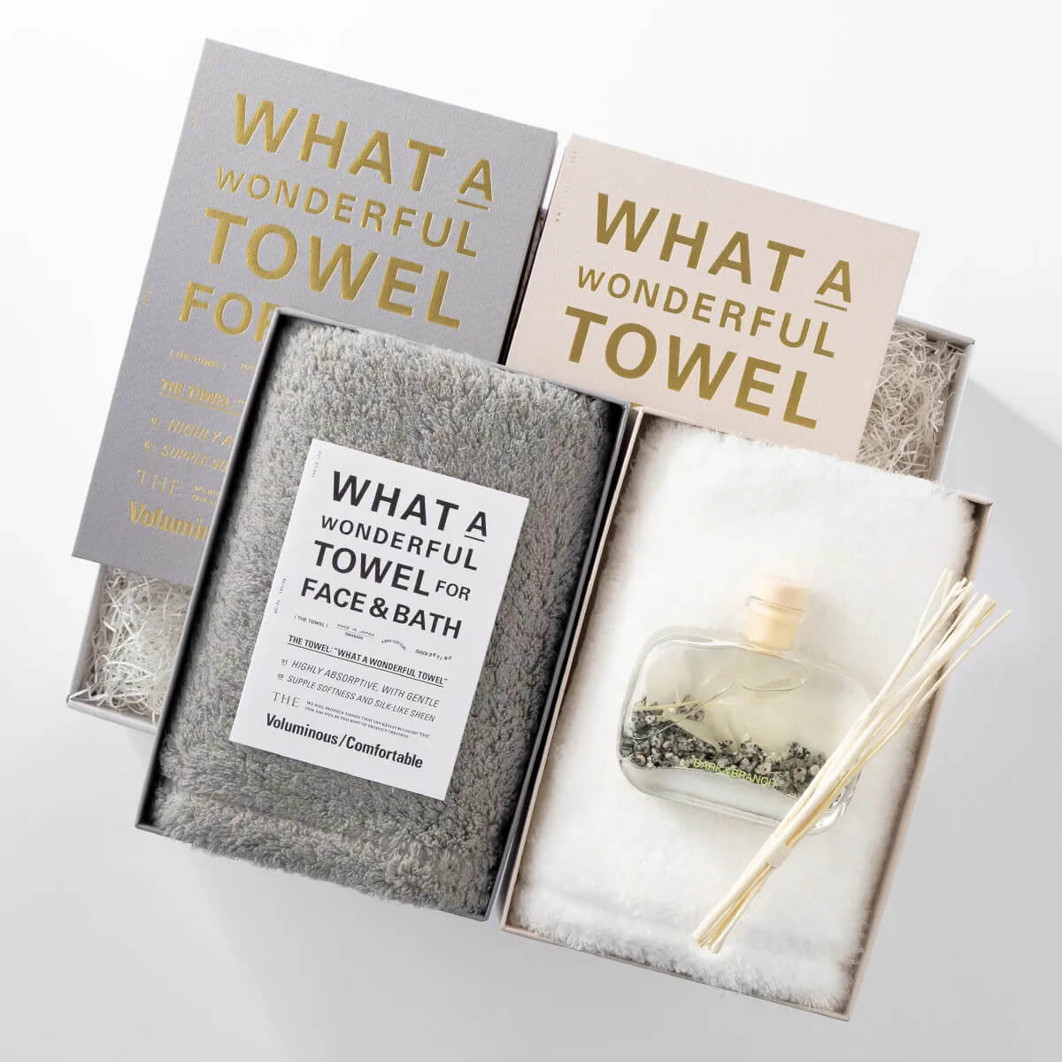 「定番」とされてきた日用品の基準を問い直し、これからのスタンダードをつくるプロダクトブランド〈THE〉が手がけた「フェイスタオル」2枚と、自然の気配を日常の空間へと運んでくれる〈バーク&ブランチ〉の「ディフューザー」を組み合わせたギフトボックス。手に触れる心地よさと穏やかに広がる香りで、深呼吸をしたくなるような、使うたびに心身がゆるむ時間を贈れるセットです。