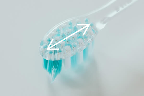 約0.02mmの毛先が歯周ポケットと歯間に入り込み、汚れをしっかりとかき出します。細かいところまでケアができるコンパクトと、効率的に磨きたい人向けのラージサイズを用意。 |