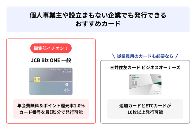 | JCB Biz ONE 一般 | 個人事業主や設立まもない企業でもカードを発行したい | ![]() |