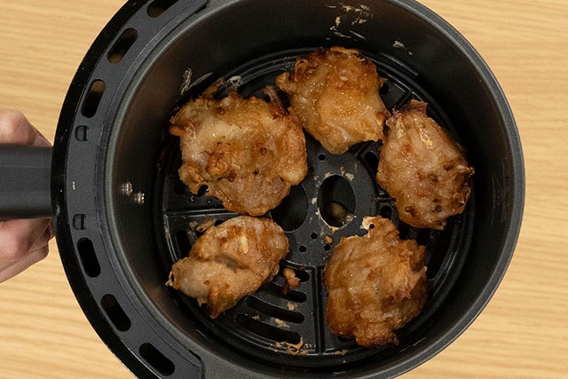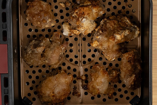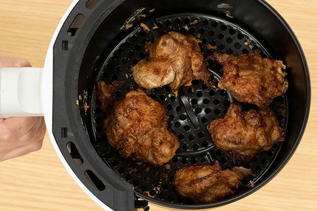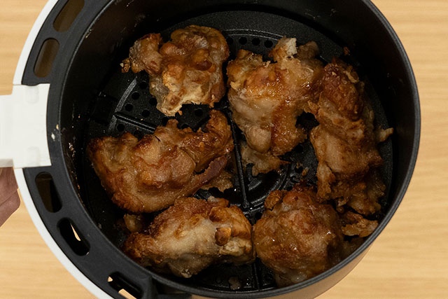 ノンフライヤーを使う際は、庫内に食材を入れすぎないことが大切です。特に唐揚げやエビフライなどの揚げ物は食材を詰め込むと、衣がはがれやすくなり、仕上がりが悪くなるだけでなく、加熱ムラの原因にもなります。