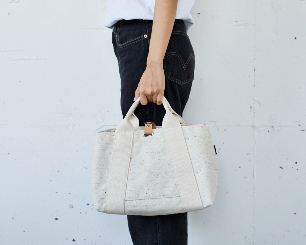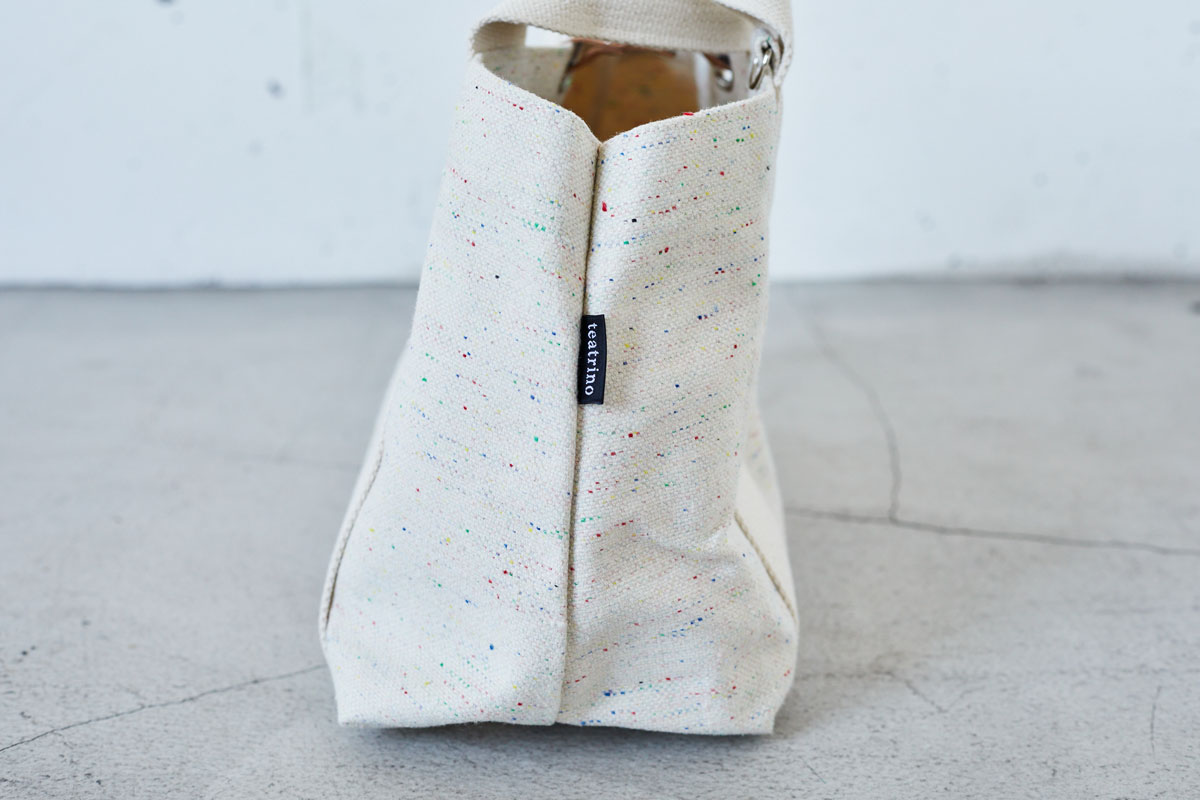 バッグブランド「テアトリーノ」を代表するアイテム。遠州織物や天竜ジビエレザーを活用。オリジナル帆布は、厚手でありながら軽く、使い込むほどに味わいが深まるのが特徴。サイズはS、M、Lを展開。