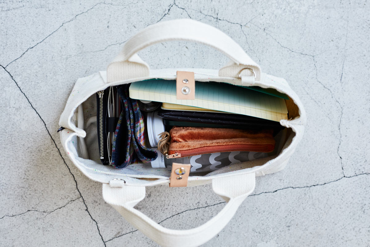 コンパクトすぎず、でも大きすぎない――。お財布、ポーチ、500mlペットボトル、手帳、スマートフォンなどがすっぽり収まる、頼れる収納力。見た目以上の容量があり、普段使いはもちろん、ちょっとしたお出かけや仕事道具の持ち運びにもぴったりです。バッグの内側には、ポケットが3つ。スマートフォンや鍵、リップなど、細かいアイテムの定位置がつくれるので、バッグの中がごちゃつかず、使いたいものがすぐに取り出せます。