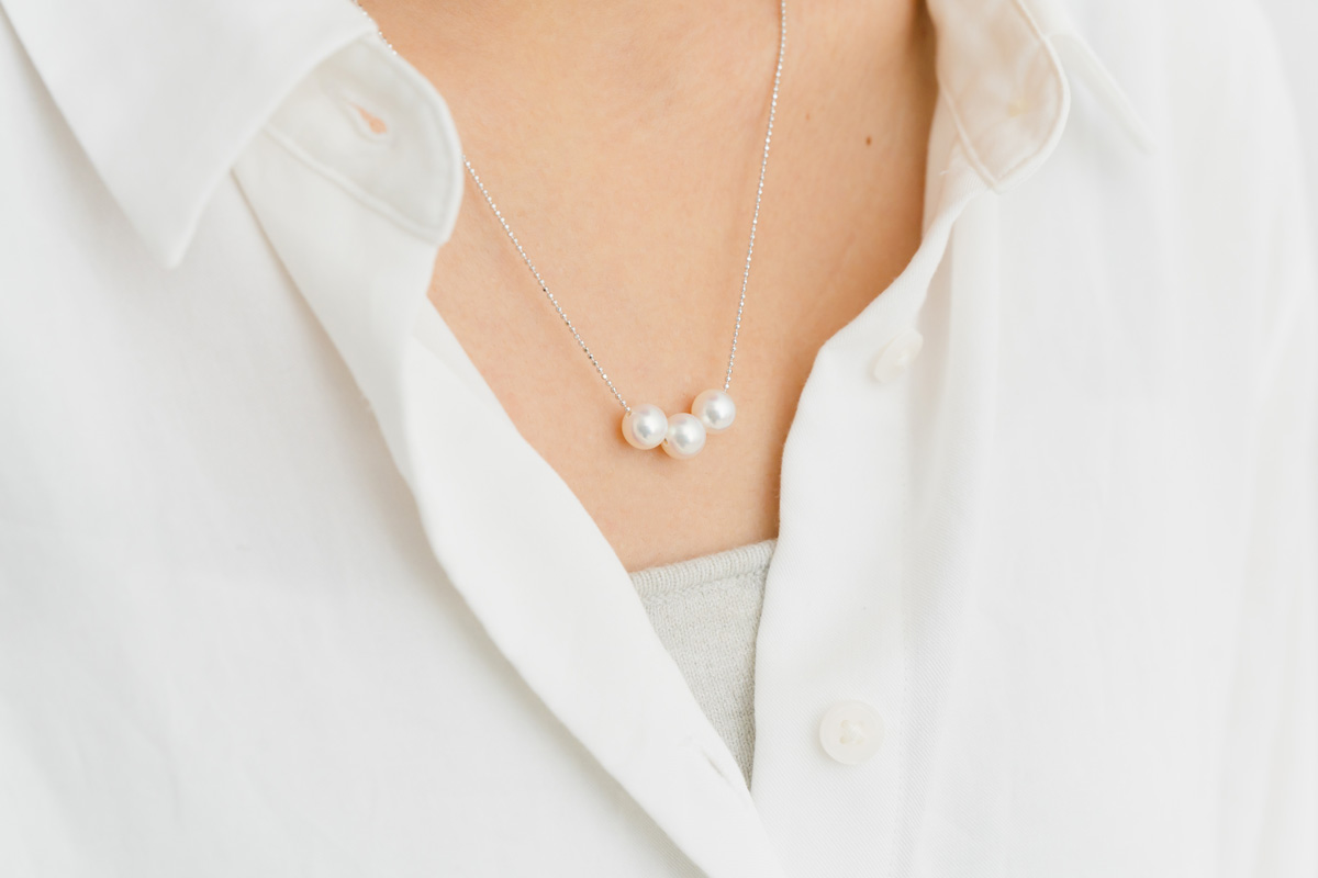 あこや真珠を3粒並べたシンプルなネックレス