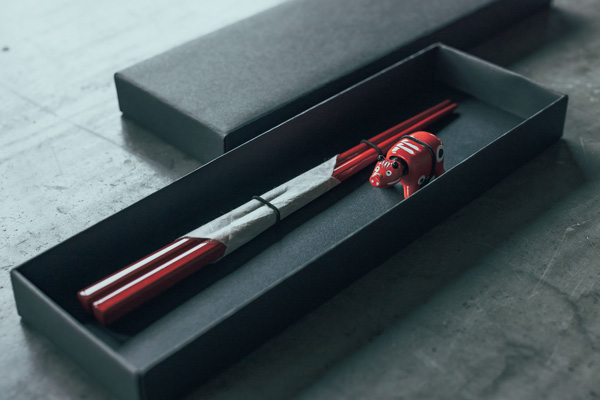 古くから会津地方は、漆の木の栽培から加飾(漆器の表面を装飾すること)までを手がける日本でも有数の漆器の産地でした。長い歴史をかけて技法を磨きあげてきた会津塗の特徴は、日常的に使いやすい堅牢さと、縁起の良い意匠を取り入れた多彩な加飾です。セットのお箸は朱色と黒色の2色展開ですが、装飾のない単色仕上げなので、ていねいに漆を塗り重ねた高度な職人技と、会津塗ならではの温かみをシンプルに堪能することができます。