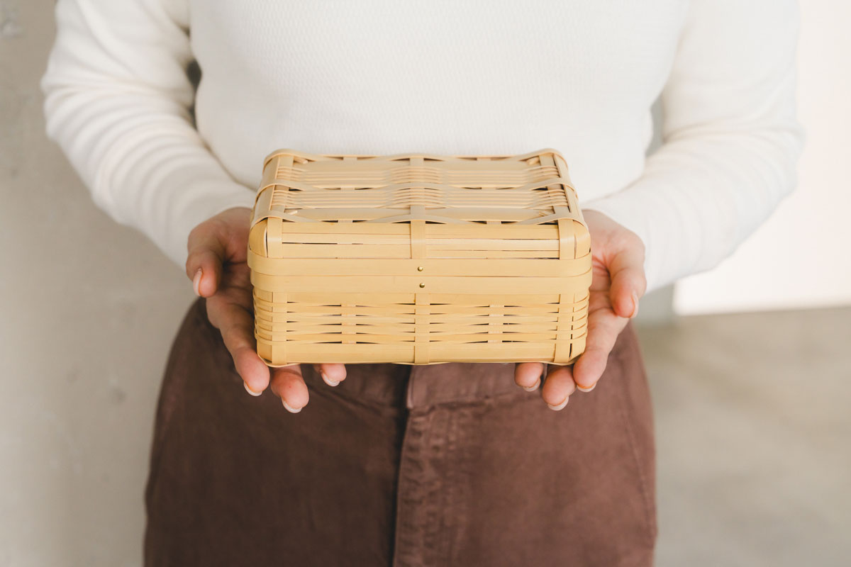 地元の天然素材でつくられたかごや弁当箱で食べる食事は、つくる人の心が伝わってくるようで、お腹だけじゃなくて心まであたたまります。そして、このサンドイッチかごはお弁当箱としてはもちろん、裁縫箱に使う人もいるそうです。用途の幅が広く、日常のどこに取り入れようか想像するだけでわくわくする商品ですよね。竹が正確に編まれた美しさはいうまでもなく、留め具の繊細さにも心をつかまれます。