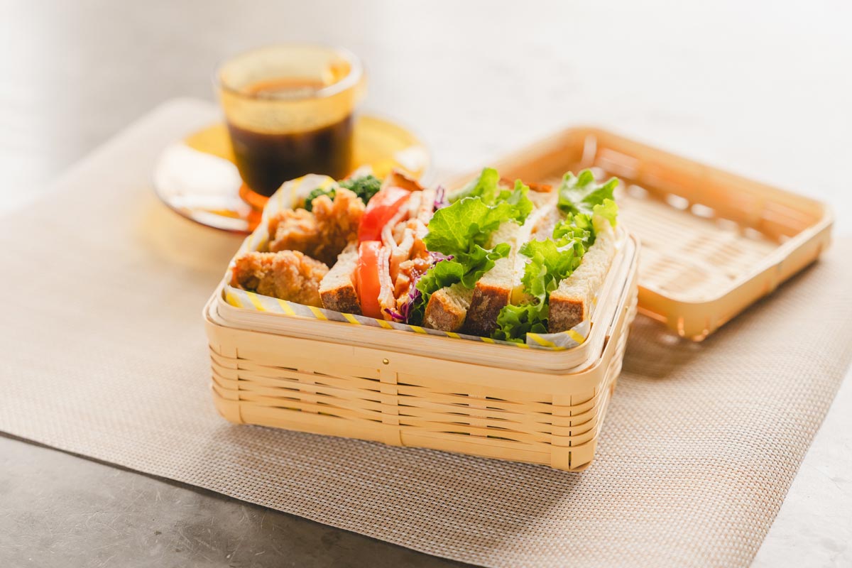 サンドイッチを詰めてみると、ちょうど一人分が入る大きさ。サンドイッチ以外にも、おにぎり二つとちょっとしたおかずなどを入れるのにぴったりです。