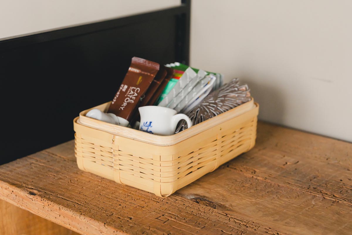 ティーバッグや砂糖、コースターなどの「お茶セット」をまとめて入れておけば、キッチン周りを整理できますし、来客時にもさっと取り出せて便利です。ほかにも、裁縫箱として使ったり、コットンや綿棒などのケア用品をまとめておくのにもよいでしょう。