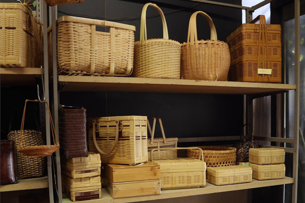 店内には竹かごをはじめとする、あらゆる竹製品が所せましと並んでいます。中でも特に人気が高いのが、今回ご紹介する「白竹サンドイッチかご」です。